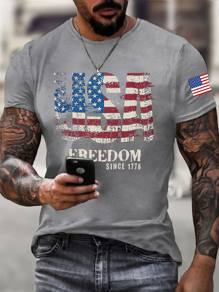 Men's Freedom Of America Flag Short Sleeve T-shirt