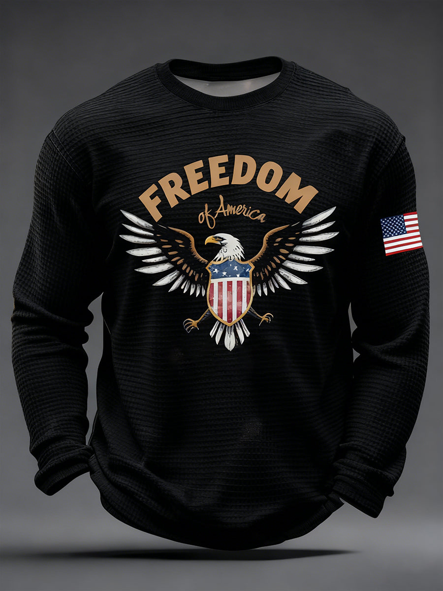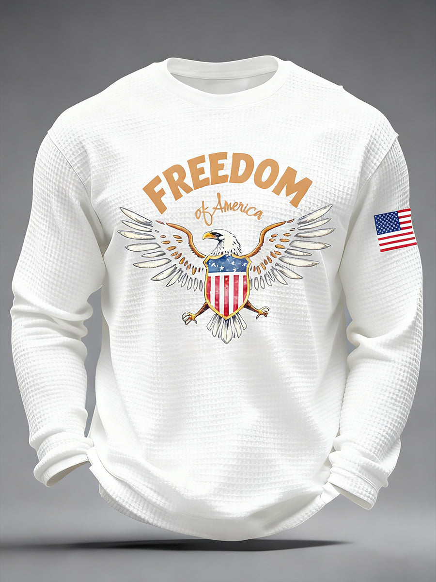 Men's Freedom Of America Flag Waffle Long Sleeve T-Shirt