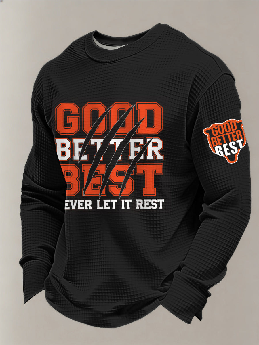Men's Good Better Best Print Football Fans Gameday Casual Waffle Long Sleeve T-Shirt