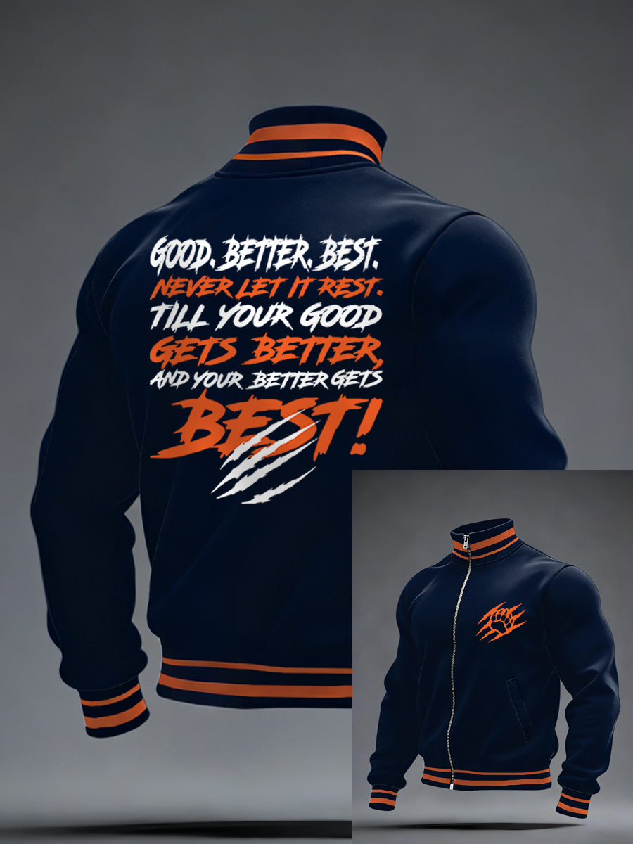 Men's Good Better Best Print Football Fans Gameday Casual Zipper Jacket