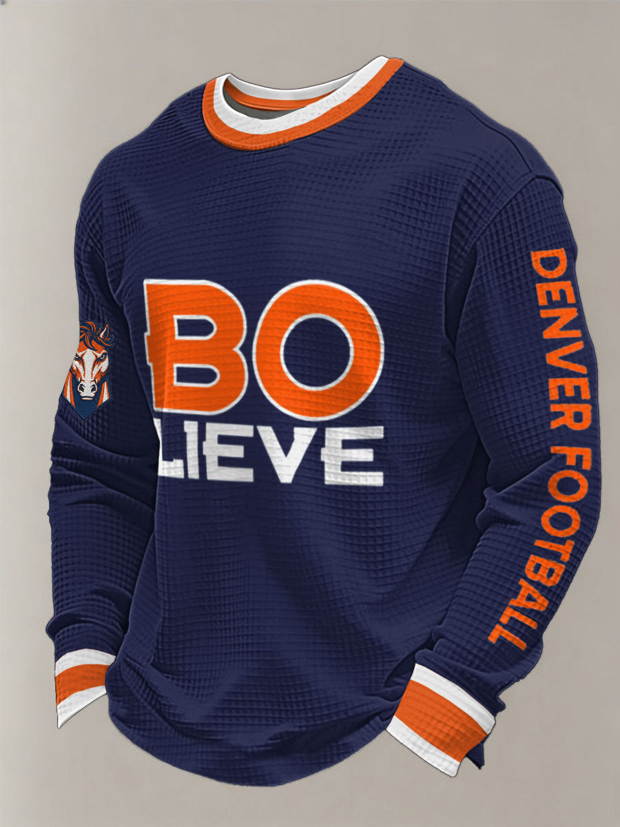 Men's Let's Ride Horse Football Lover Print Waffle Sweatshirt
