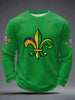 Men's Mardi Gras Fleur De Lis Print Casual Waffle Long Sleeve T-Shirt
