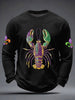 Men's Mardi Gras Lobster Fleur De Lis Print Casual Waffle Long Sleeve T-Shirt