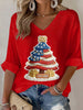 Women's  Anniversary Christmas Tree Print Casual T-Shirt