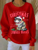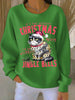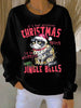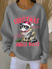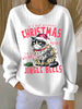 Women's Christmas cat print Ribbed Round-Neck Sweatshirt