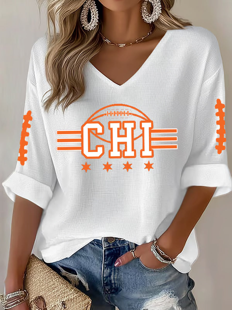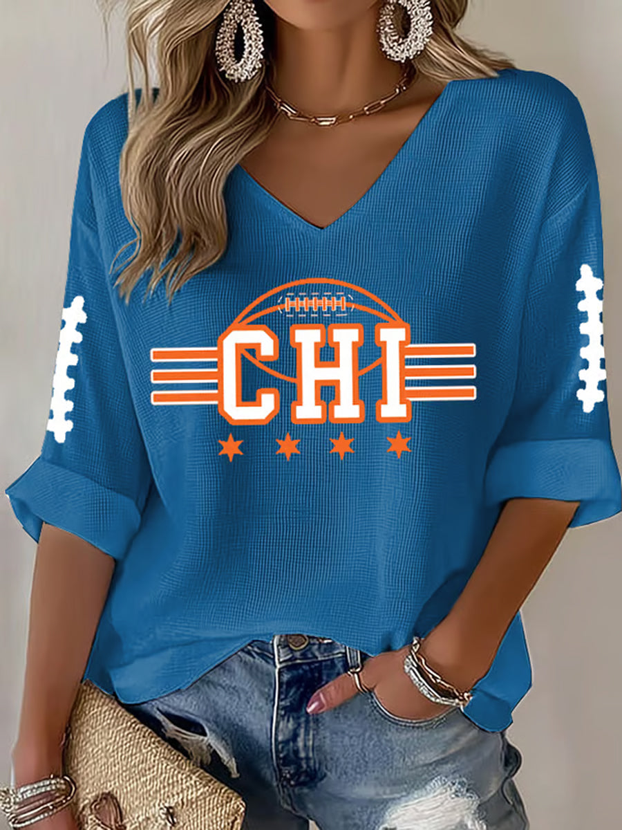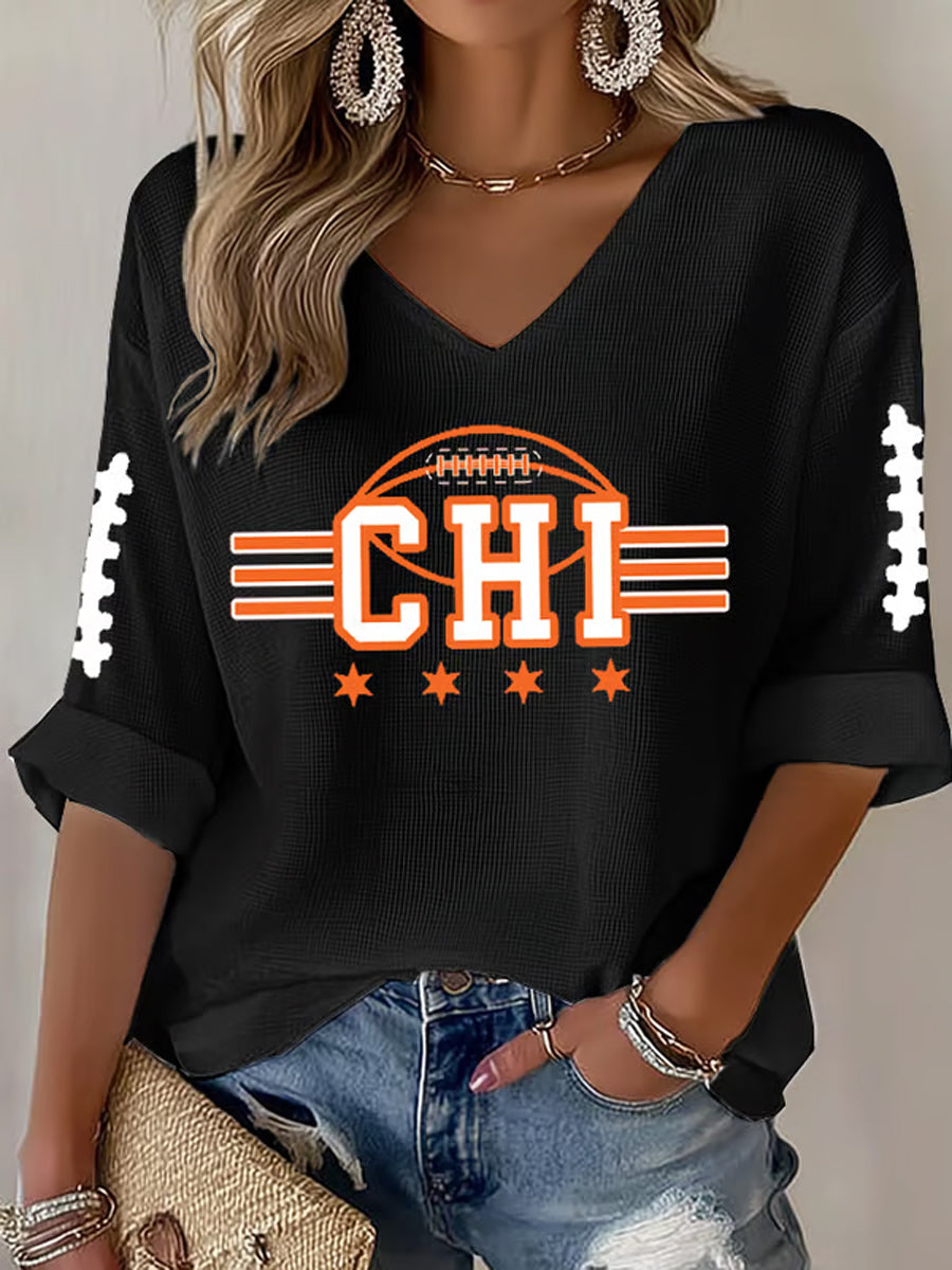 Women's Football Fans Lovers Gameday Casual Waffle T-shirt