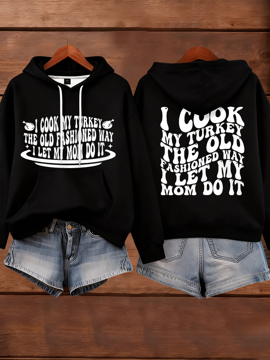Women's I Cook My Turkey The Old Fashioned Way I Let My Mom Do It Funny Thanksgiving hoodie