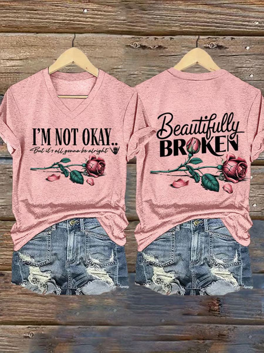 Women's I'm Not Ok But Its All Gonna Be Alright Printed Casual T-shirt
