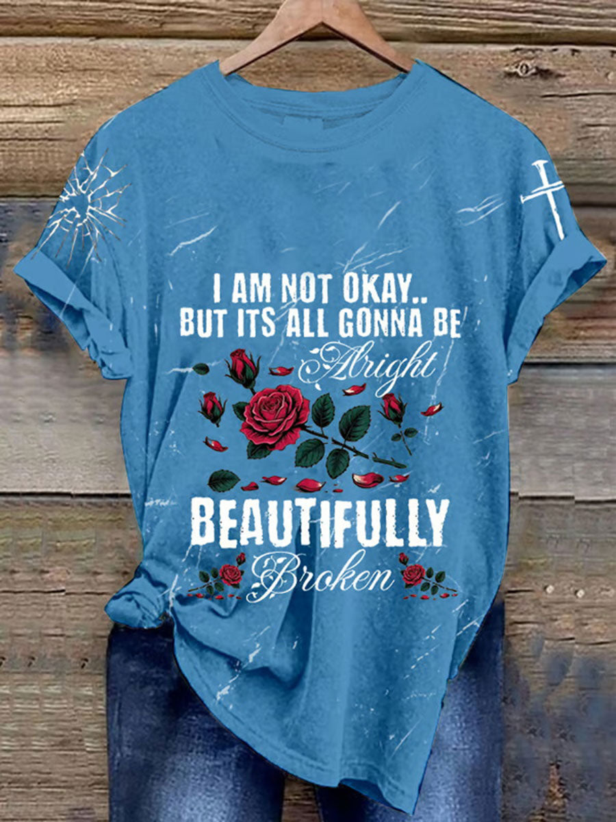 Women's I'm Not Ok But Its All Gonna Be Alright Printed Casual T-shirt