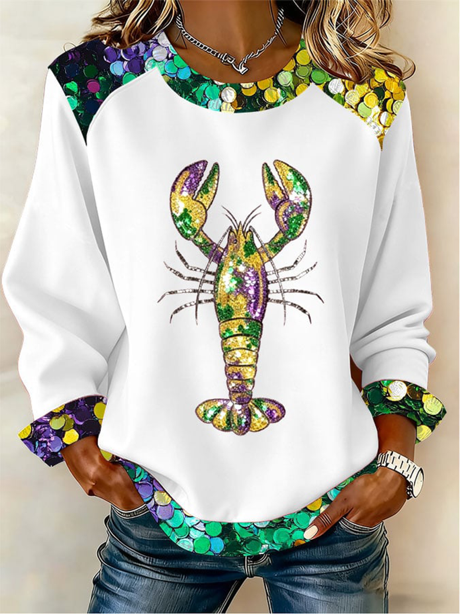 Women's Mardi Gras Crawfish Denim Patchwork Top