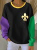 Women's Mardi Gras Fleur De Lis Colorblock Print Casual Sweatshirt