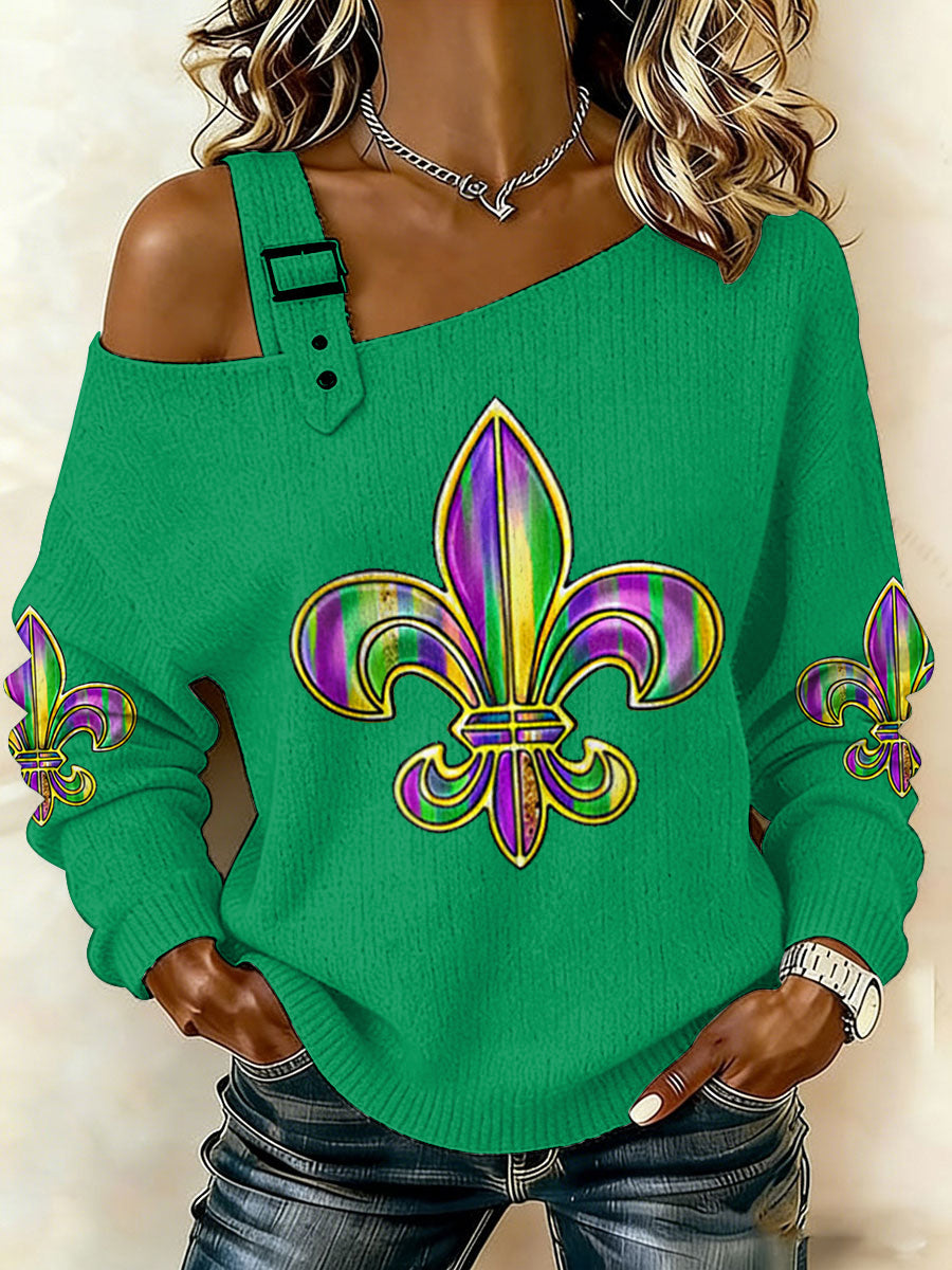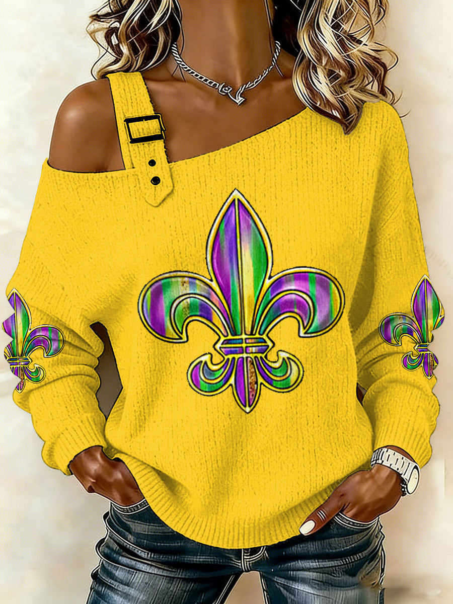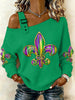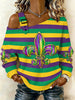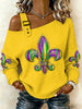 Women's Mardi Gras Fleur De Lis Print Casual Off-Shoulder Top