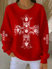 Women's Rock Print Ribbed Round-Neck Sweatshirt