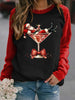 Women's Santa Claus and red wine glass print raglan sleeve sweatshirt