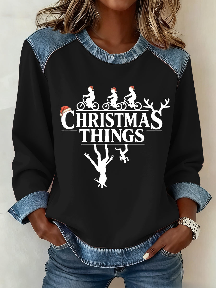 Women's Stranger Things Pattern Patchwork Art Sweatshirt